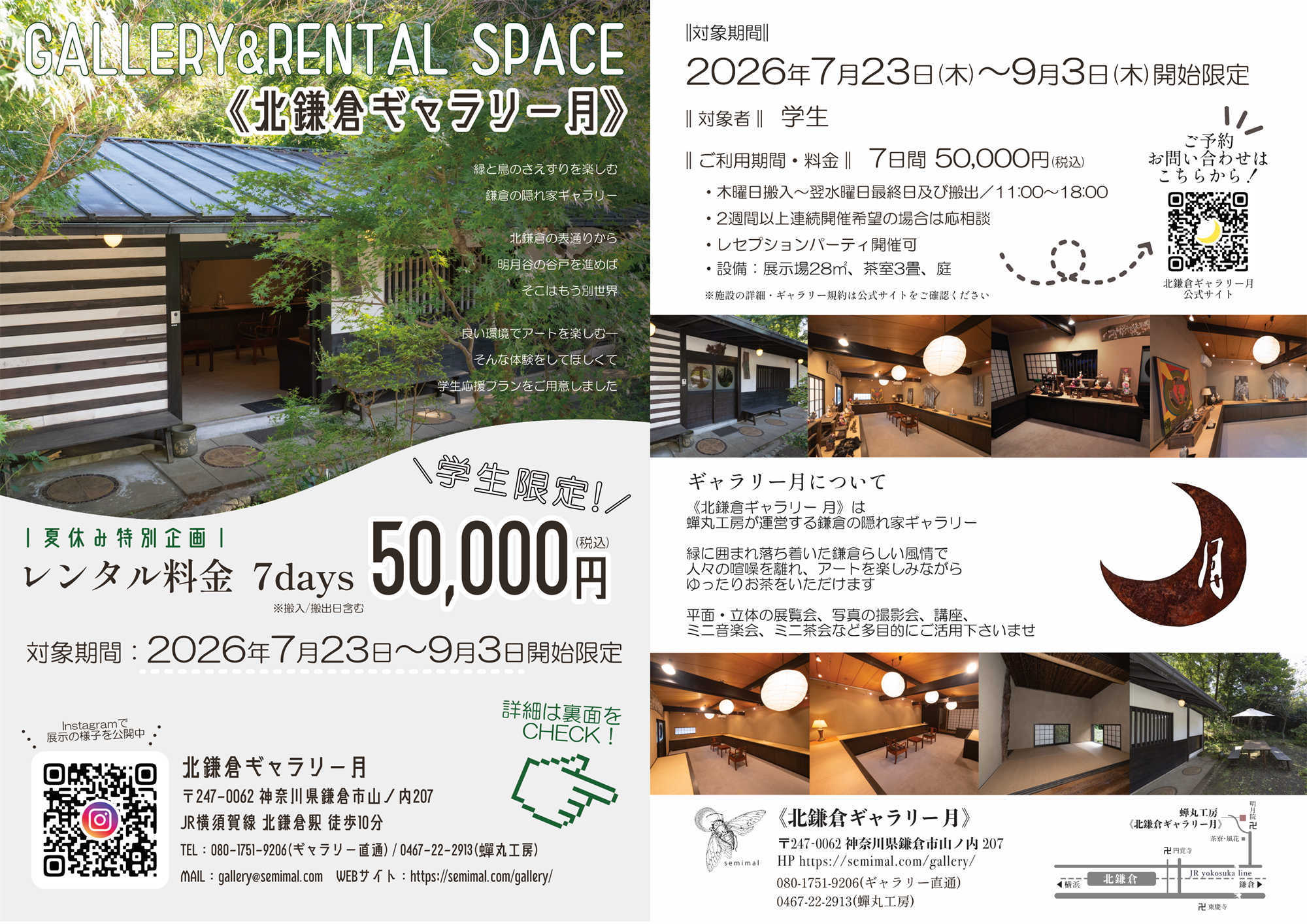 《北鎌倉ギャラリー月》は、蟬丸工房が運営する鎌倉の隠家ギャラリー
