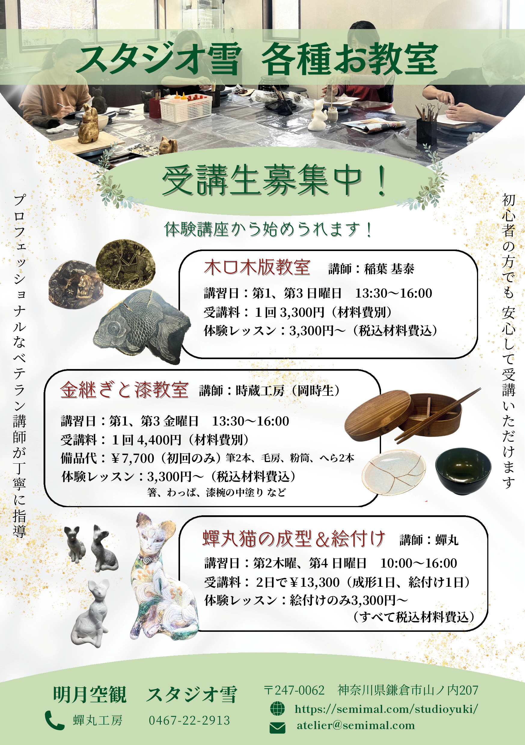 ◆蟬丸猫の成形&絵付け教室 講師:蟬丸
